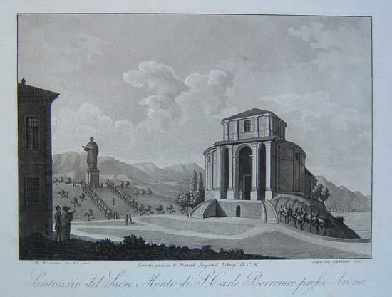 Santuario del Sacro Monte di S. Carlo Borromeo presso Arona, contenuta in: "Descrizione dei santuari del Piemonte...", Torino, Reycend, 1822/1825, vol. 2° (1825) di Modesto Paroletti